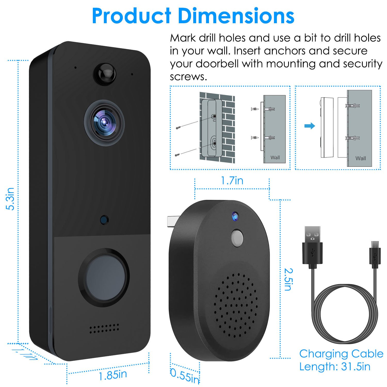 *Long Standby*:The standby time is up to 60 days long after being fully charged. No need to charge the bell frequently. Wireless design says no to a tangle of wires.
